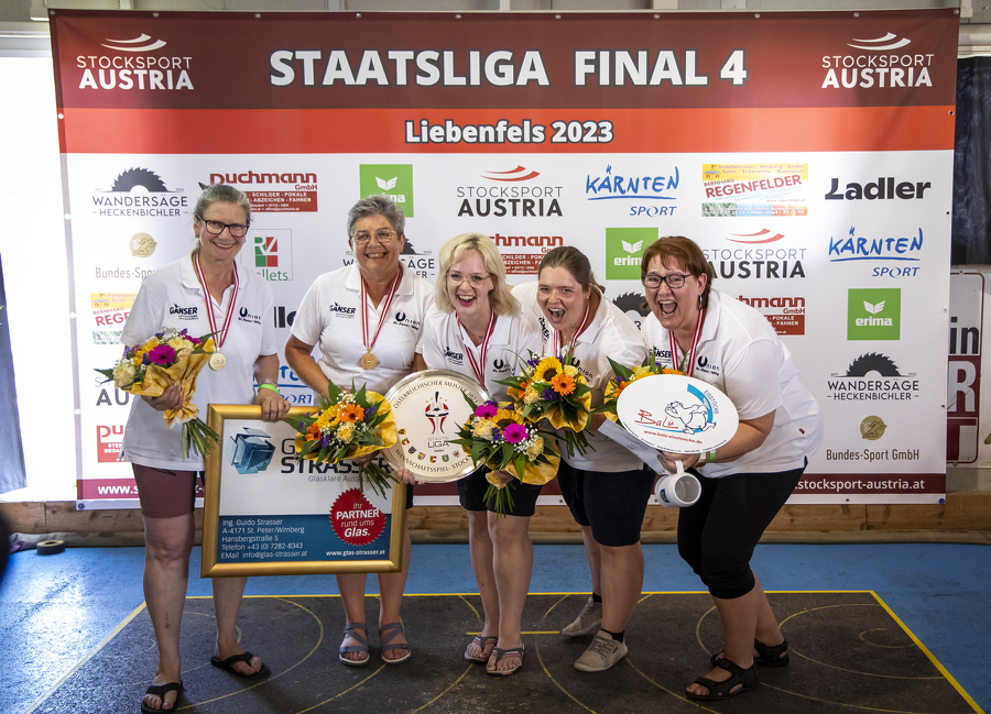 Titel für Oberösterreich und die Steiermark! Die Stockschützinnen der SU Stocksport St. Peter am Wimberg besiegten ESV Neustift Innermanzing im Finale in Liebenfels (K) mit 4:2. Nach zweimal Silber in den letzten beiden Jahren endlich der ersehnte Titel. Neustift-Innermanzing musste sich wie im Winter bei der Staatsmeisterschaft in Ternitz auch auf Asphalt St. Peter am Wimberg im Finale geschlagen geben.