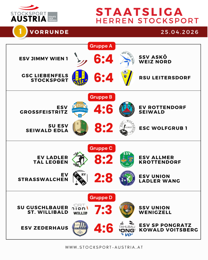 Die 1. Vorrunde der Stocksport Staatsliga bot packende Duelle, unglaublich knappe Entscheidungen und Ausrufezeichen der Aufsteiger und des Titelverteidigers. Zahlreiche Fans sorgten in den Hallen für großartige Stimmung. Am Ende standen fünf Heimsiege und drei Auswärtserfolge zu Buche.