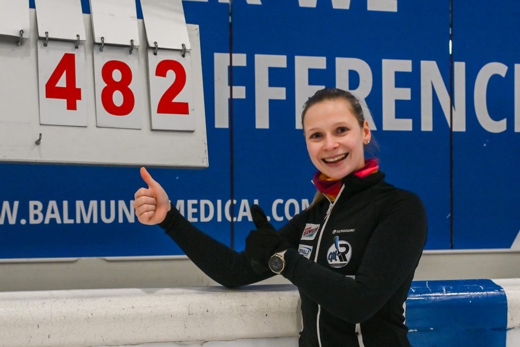 Petra Grube: „Leider war im Finale die Bahn zäher als im Grunddurchgang, dadurch brauchte ich beim Einschießen zu lange um die richtige Platte fürs Mass zu finden. Auf Bahn vier konnte ich aber die restlichen Verfolgerinnen die näher gekommen waren, noch abwehren und die Medaille sichern. Ich bin sehr zufrieden und glücklich.“